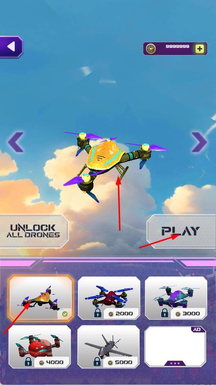 3、無(wú)人機(jī)升級(jí)與解鎖:用戰(zhàn)斗獎(jiǎng)勵(lì)的資源升級(jí)無(wú)人機(jī)的火力等屬性,解鎖新機(jī)型與涂裝,收集武器配件,提升輸出效率,打造適應(yīng)不同戰(zhàn)場(chǎng)的王牌無(wú)人機(jī)。