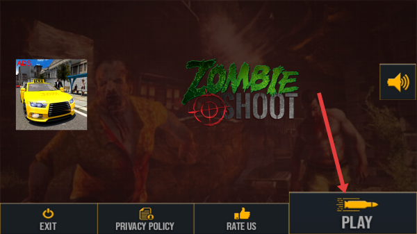 1、在Zombie-Shoot游戲主界面,點(diǎn)擊右下角標(biāo)有子彈圖標(biāo)的PLAY按鈕,進(jìn)入武器選擇頁面,開啟對抗僵尸的游戲流程。
