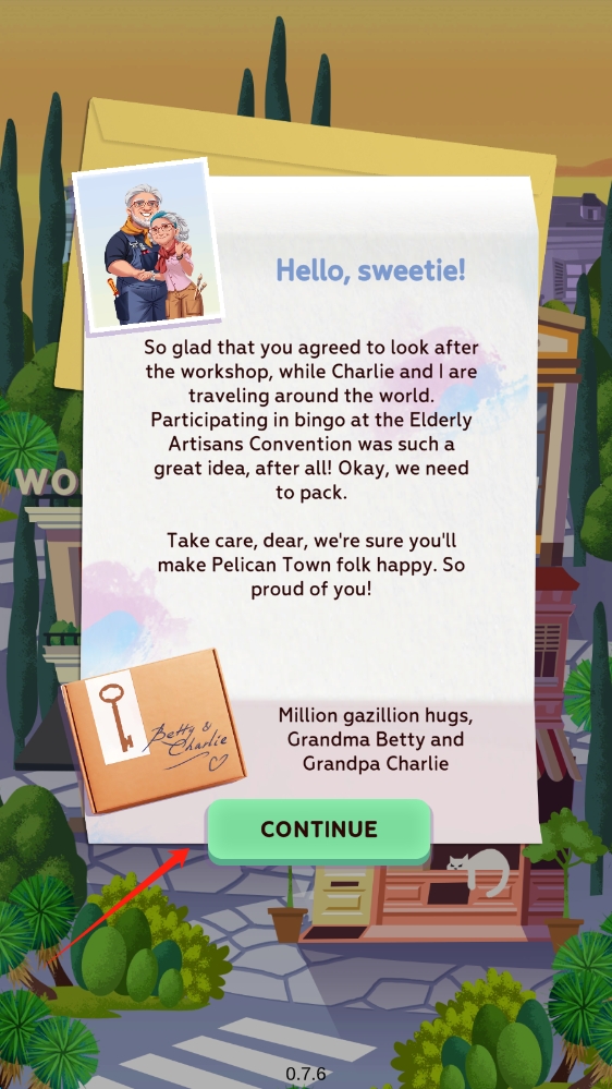 1、在劇情界面,認真閱讀信件,知曉故事背景,隨后點擊CONTINUE,開啟游戲的組裝任務。