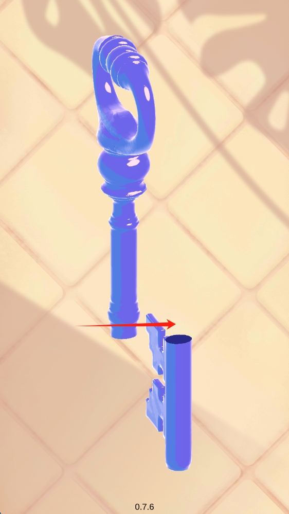 2、在組裝界面,專注觀察藍色鑰匙的兩部分,找準拼接位置,精準操作,完成鑰匙的組裝。