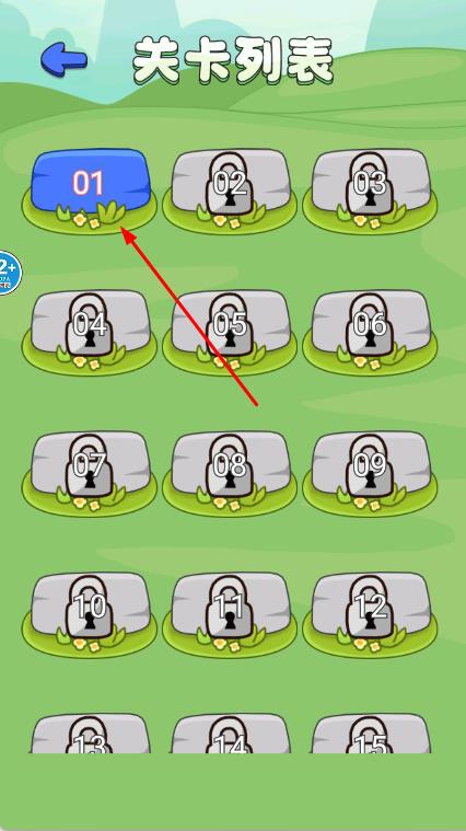 1、進(jìn)入界面,點(diǎn)擊開(kāi)始游戲按鈕,在關(guān)卡列表界面,選擇關(guān)卡1,點(diǎn)擊進(jìn)入場(chǎng)景。