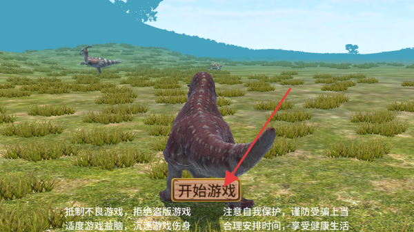 1、進(jìn)入游戲界面后,點(diǎn)擊開始游戲按鈕,即可開啟恐龍模擬游戲的冒險(xiǎn)之旅。
