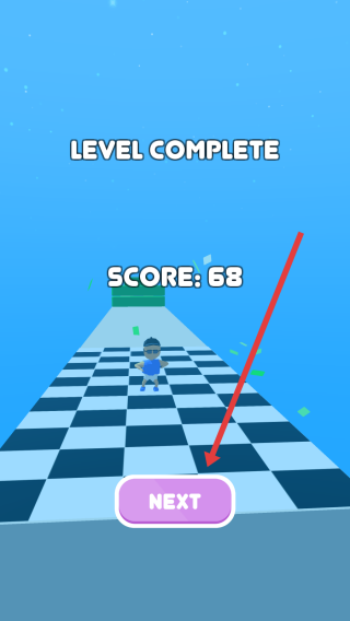 3、成功通關(guān)后,點(diǎn)擊界面底部紫色NEXT按鈕,結(jié)束當(dāng)前關(guān)卡,進(jìn)入下一關(guān),開啟新的方塊堆疊跑酷挑戰(zhàn)。