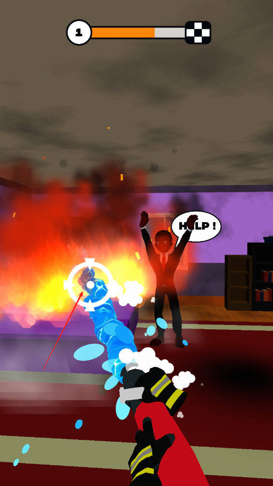 1、屋子里到處都是火堆,我們需要將準(zhǔn)心對準(zhǔn)火堆,進(jìn)行滅火,將里面被困的人員解救出來。
