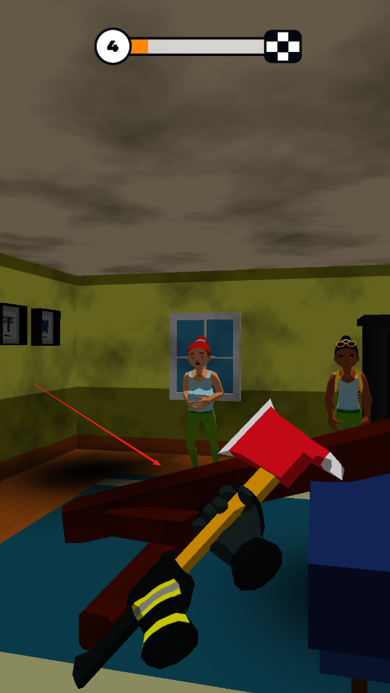 3、先將火滅掉,發(fā)現(xiàn)兩個(gè)女孩被木梁困在里面,再使用斧頭將木梁劈開,將女孩解救出來,徹底撲滅大火后完成任務(wù)。