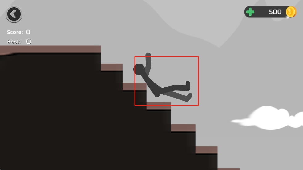 2、在火柴人下落過(guò)程中借助臺(tái)階的高低差,使其身體與臺(tái)階碰撞,產(chǎn)生翻轉(zhuǎn)、傷害,提升評(píng)分項(xiàng),注意觀察動(dòng)作反饋。