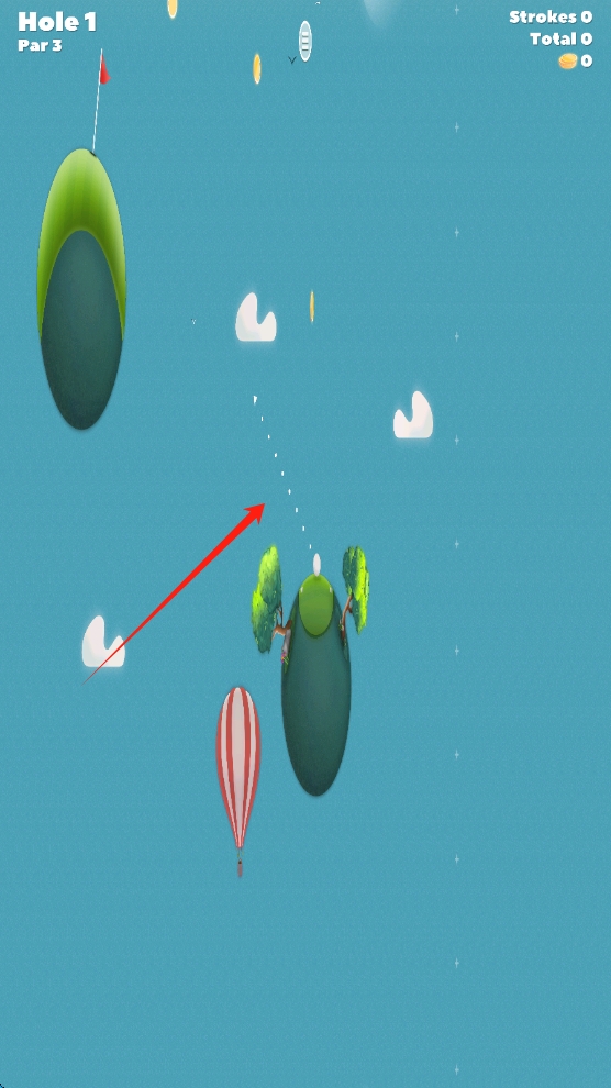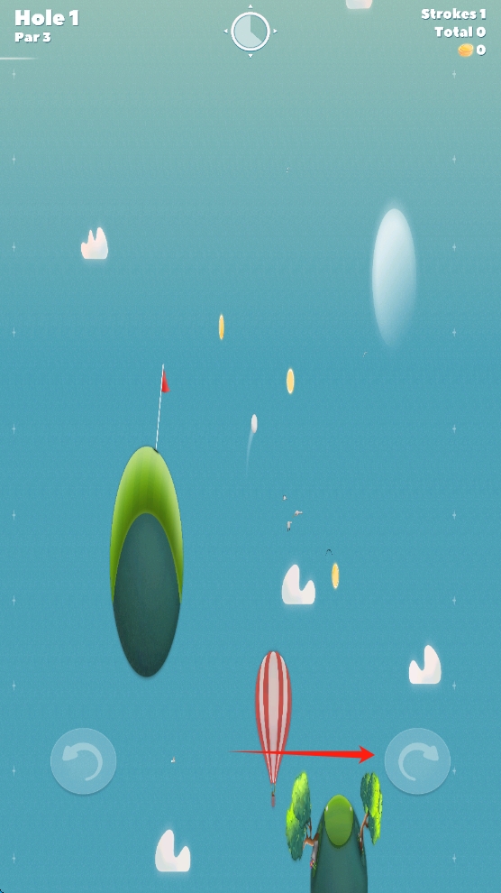2、游戲中,專注操控高爾夫球,在天空浮島上精準擊球,以標準桿為目標,完成Hole-1的挑戰(zhàn)。