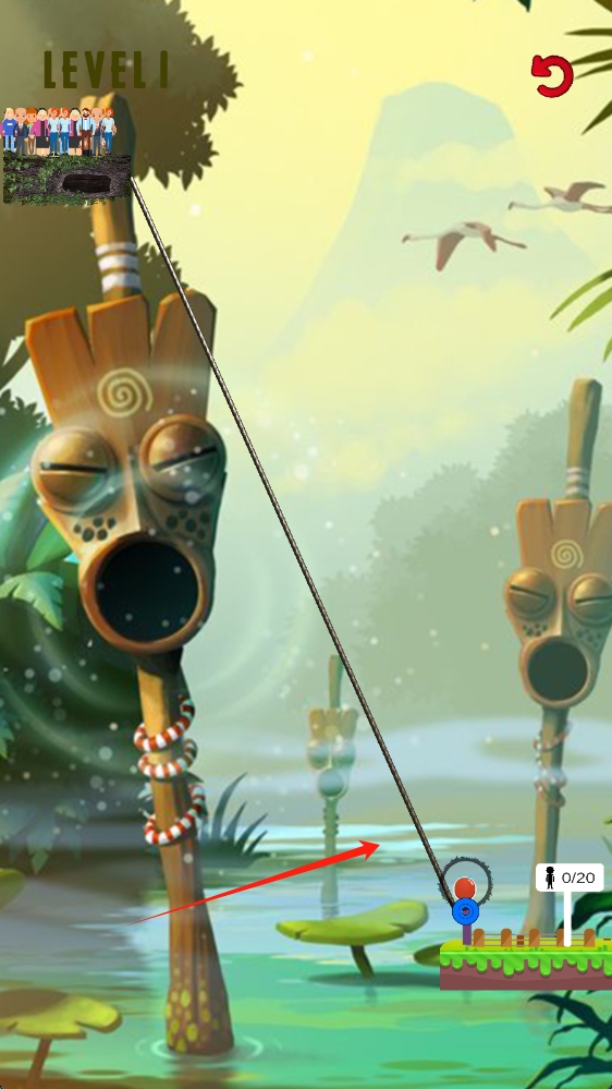1、自由闖關(guān)冒險(xiǎn):在游戲中自由闖關(guān),根據(jù)不同關(guān)卡特點(diǎn)制定策略,利用繩索等元素突破障礙,感受刺激的冒險(xiǎn)過程。