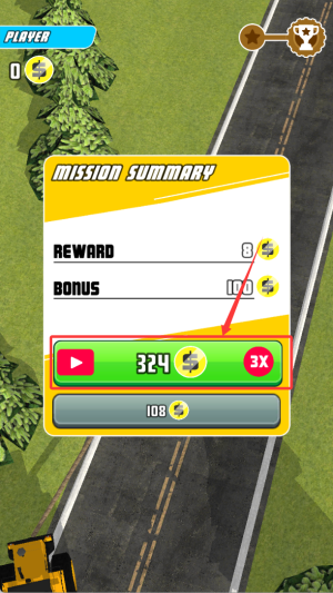 3、完成比賽后選擇觀看激勵視頻,可立即獲得三倍金幣獎勵用于車輛改裝。