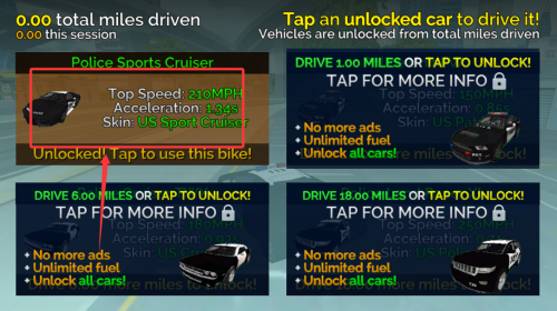4、收集系統(tǒng)通過任務獎勵解鎖新警車與配件,成就系統(tǒng)記錄各項執(zhí)法數(shù)據(jù),達成目標可獲得特殊稱號。