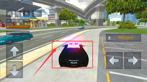 2、操作設(shè)計簡潔直觀,左側(cè)虛擬方向盤控制方向,右側(cè)按鍵管理警笛與加速,輔助瞄準系統(tǒng)可幫助鎖定目標車輛。