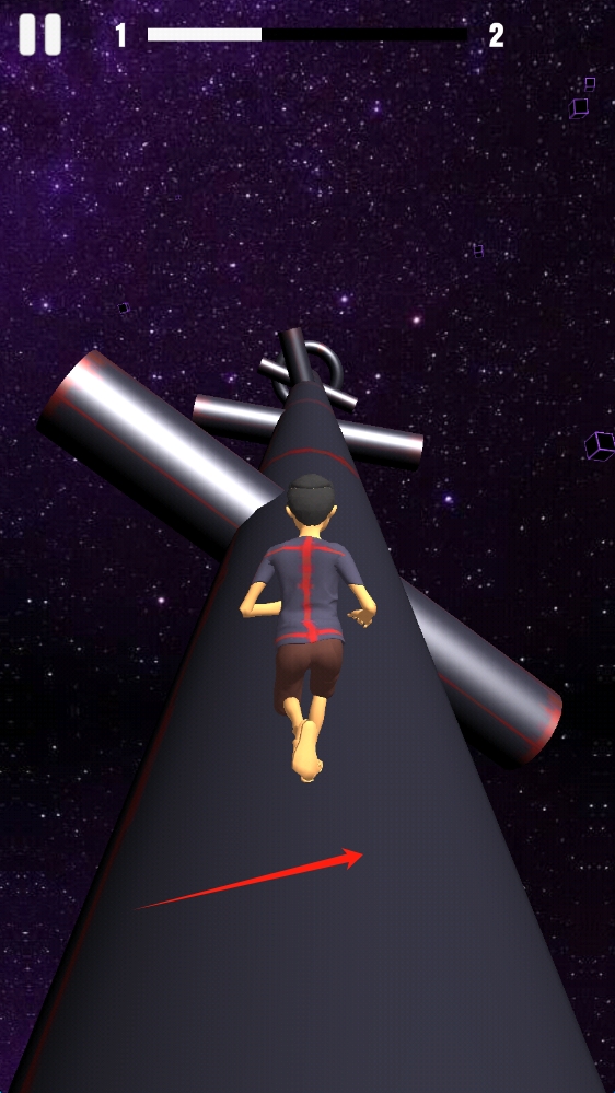 2、游戲中,操控角色在太空管道上靈活奔跑,注意躲避障礙,關(guān)注關(guān)卡進(jìn)度。