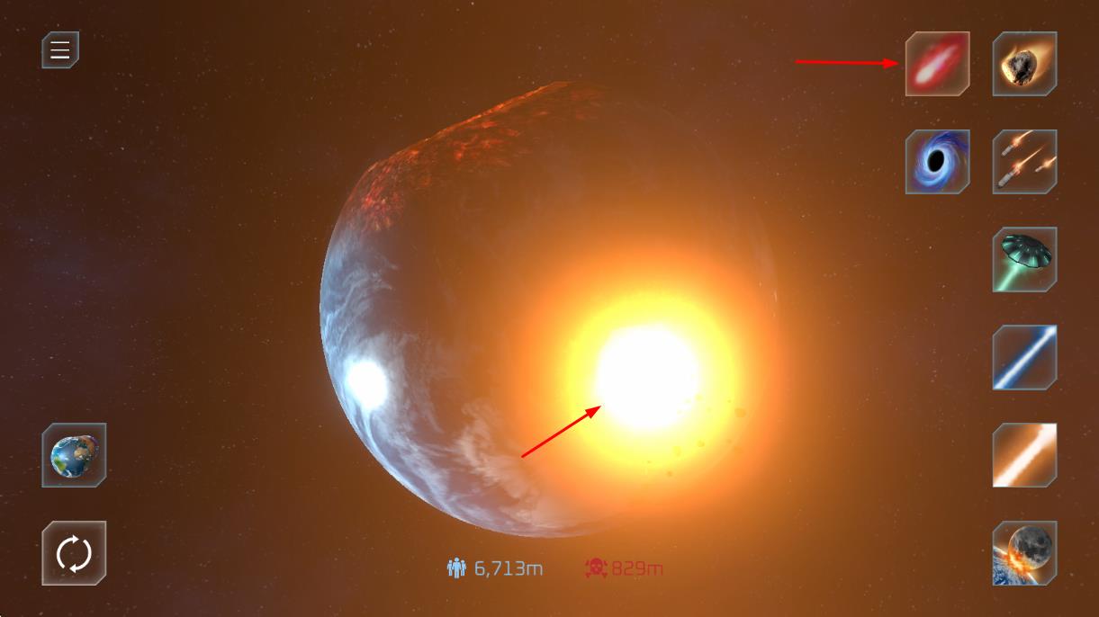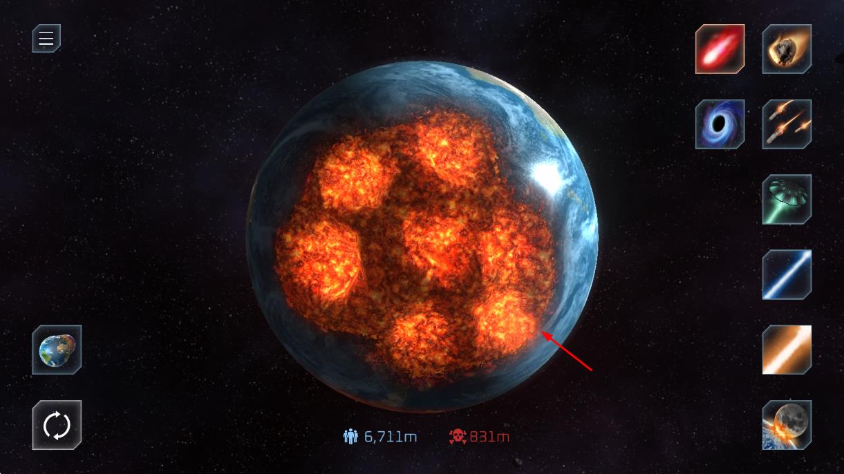 2、多樣武器體系:包含激光炮、隕石撞擊、核爆裝置等十余種武器,每種武器擁有獨特破壞效果與能量消耗,滿足不同粉碎策略需求。