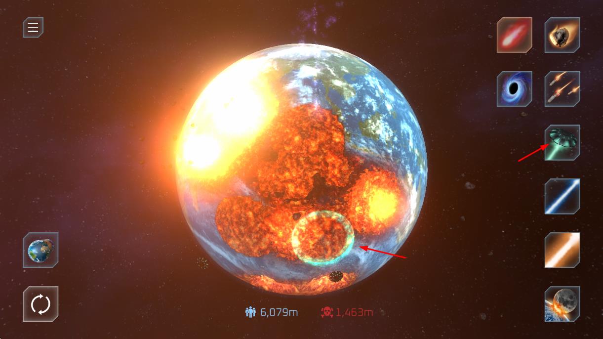 1、武器選擇技巧:針對巖石行星優(yōu)先使用高沖擊力武器如隕石撞擊,面對氣態(tài)行星選擇范圍攻擊武器如核爆,提升粉碎效率。