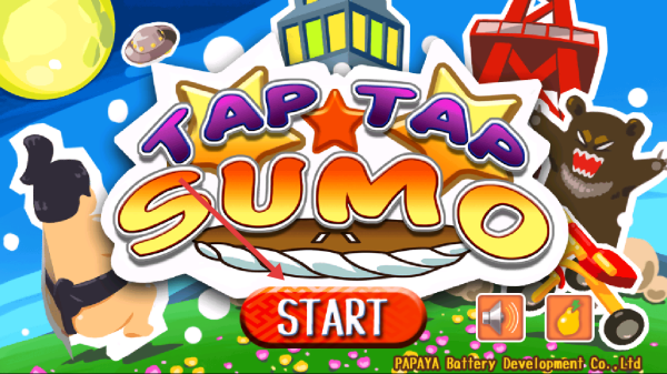 1、點(diǎn)擊START,進(jìn)入Tap Tap Sumo,開啟相撲對(duì)戰(zhàn),在趣味道場(chǎng)體驗(yàn)點(diǎn)擊操作的競(jìng)技樂趣。