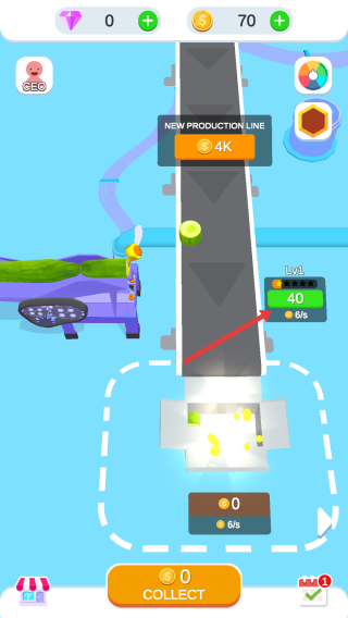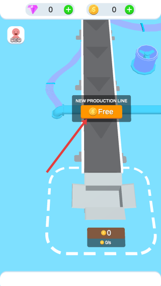 1、在游戲初始界面,點擊標(biāo)有Free按鈕,可免費(fèi)解鎖新的生產(chǎn)線,為后續(xù)生產(chǎn)流程拓展基礎(chǔ)。