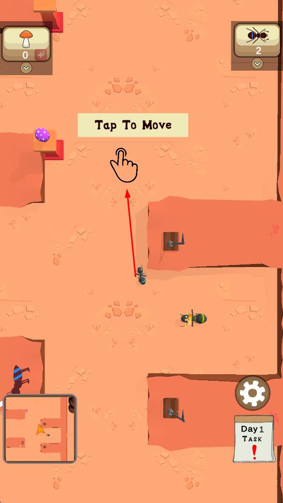 1、根據(jù)TapToMove提示點(diǎn)擊屏幕,操控螞蟻移動,這是開啟探索之旅的關(guān)鍵操作,推動游戲進(jìn)程。