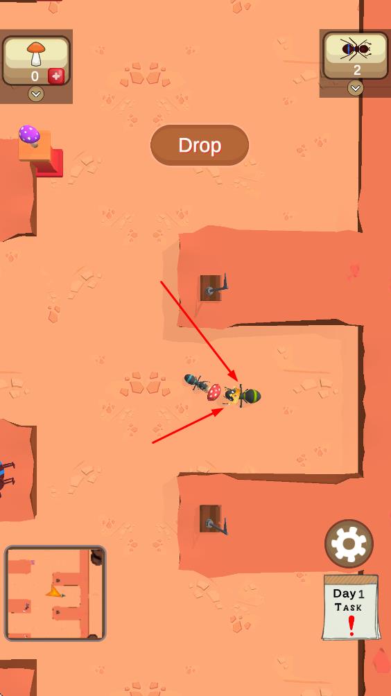 1、資源收集運(yùn)回巢穴:玩家需指揮螞蟻外出探尋并收集各類資源,包括食物、生存材料等,螞蟻們會有序協(xié)作將資源運(yùn)回巢穴,這些資源是喂養(yǎng)蟻后、培育幼蟲的基礎(chǔ)。