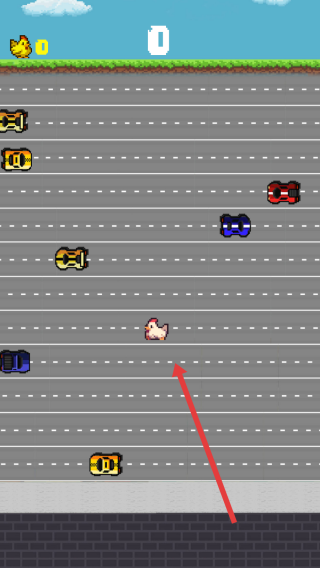 2、在游戲中通過點擊屏幕操控小雞在車道間移動,避開各類行駛車輛,爭取安全通過,積累分?jǐn)?shù)。