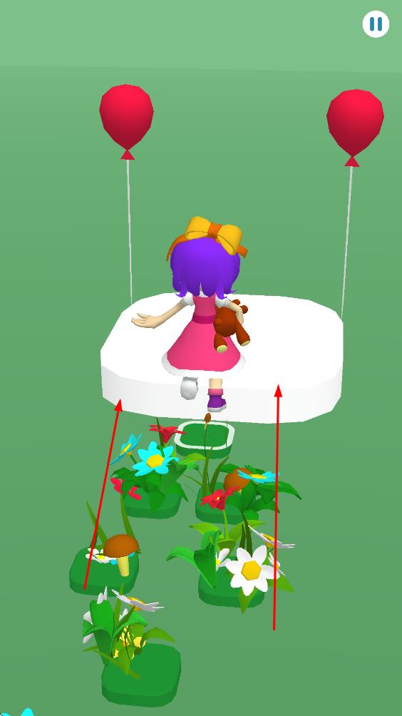 3、成功躍過鱷魚池后,抵達氣球懸掛的白色平臺,角色平穩(wěn)著陸,完成本關(guān)卡挑戰(zhàn),開啟下一段童話冒險。