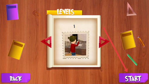 2、進(jìn)入關(guān)卡選擇界面,點(diǎn)擊右下角紫色START按鈕,進(jìn)入Level-1場(chǎng)景,開(kāi)啟女孩的校園探索挑戰(zhàn)。