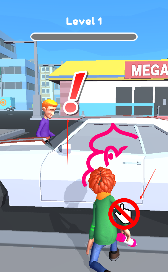 1、點擊屏幕偷偷在對方的車上畫惡搞圖案,要注意對方時不時會轉(zhuǎn)頭,轉(zhuǎn)頭的時候要藏起來。