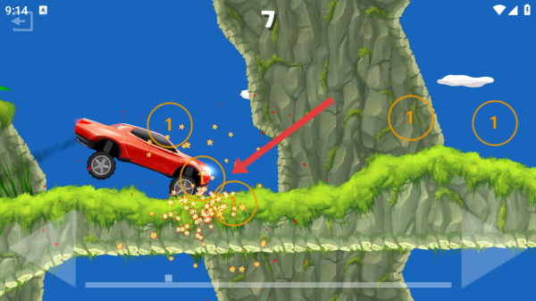 2、在爬坡路段,瞄準橙色球體帶數字1標識,通過油門來控制車輛爬坡,收集沿途積累分數的數字球。