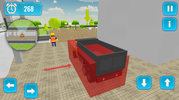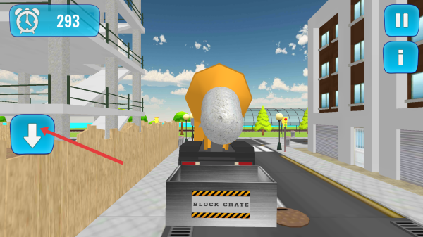 1、在游戲開始時,根據(jù)界面提示,點擊相應(yīng)的操作按鈕,如向下箭頭按鈕,控制卡車的動作,開始運輸貨物操作。