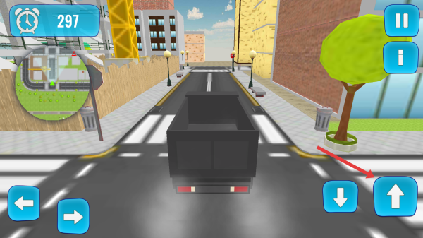 2、在駕駛卡車的過程中,利用屏幕上的方向控制按鈕,如向上、向下、向左、向右箭頭按鈕,操控卡車在道路上行駛,順利到達(dá)目的地。