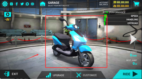 1、進(jìn)入車庫界面挑選心儀摩托,每款車型具備獨(dú)特的性能參數(shù)與操控特性。