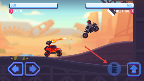 2、賽道中用方向鍵控車移動(dòng),遇對(duì)手點(diǎn)武器按鈕發(fā)射攻擊,借地形躲傷害,持續(xù)輸出擊敗敵人。