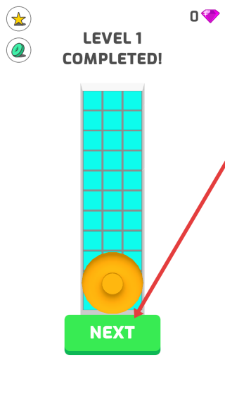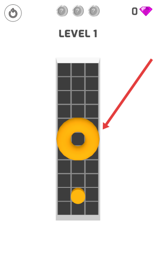 1、滑動屏幕翻轉(zhuǎn)黃色甜甜圈,使其下落覆蓋下方小球,填滿方格,完成LEVEL1的形狀拼接任務。