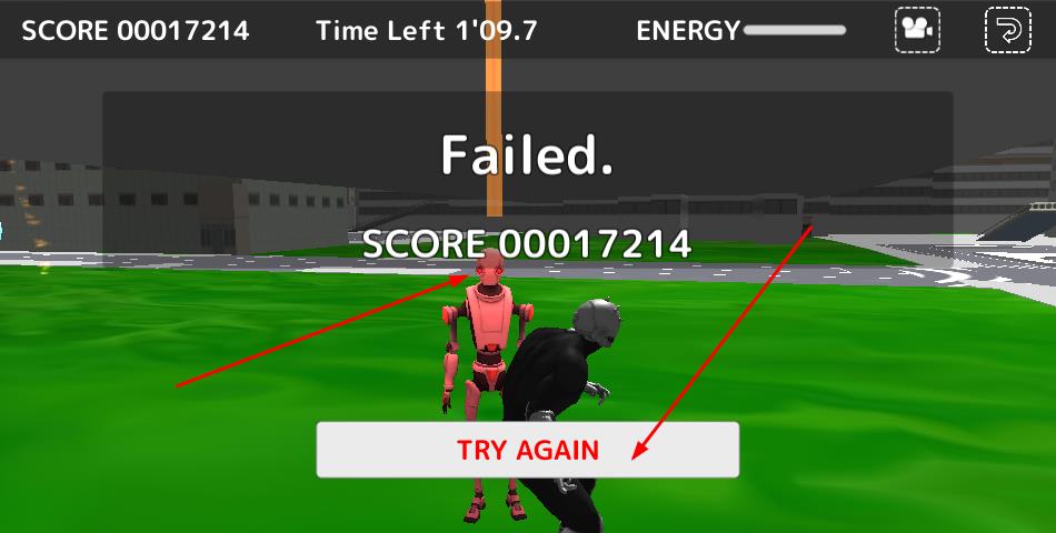 3、若觸發(fā)Failed.失敗界面,查看當(dāng)前分?jǐn)?shù),點(diǎn)擊TRY AGAIN按鈕重新開始,嘗試突破更高紀(jì)錄。