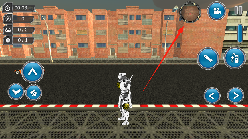 3、在城市街道場(chǎng)景,根據(jù)紅色箭頭指示,可以把角色隨意切換車子或機(jī)器人形態(tài),摧毀指定車輛、消滅敵人,完成任務(wù)進(jìn)度。