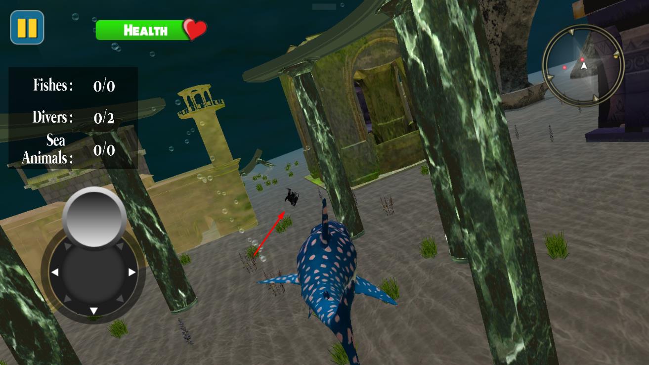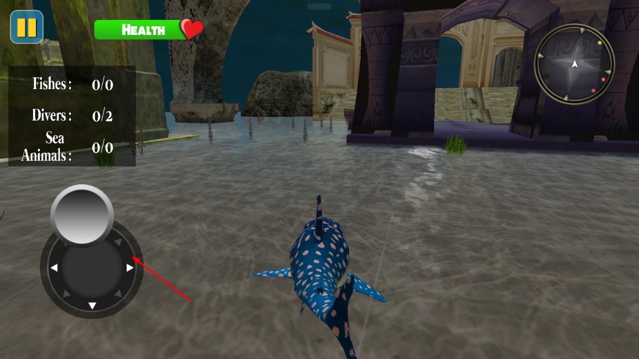 1、進(jìn)入游戲選擇初始鯊魚種類,在海洋場(chǎng)景中通過虛擬搖桿控制移動(dòng)方向,靠近獵物時(shí)點(diǎn)擊攻擊鍵發(fā)起捕食。