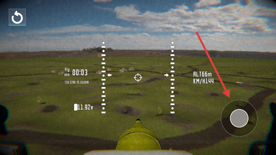 1、通過(guò)虛擬搖桿控制無(wú)人機(jī)飛行軌跡,長(zhǎng)按加速鍵啟動(dòng)俯沖攻擊模式。