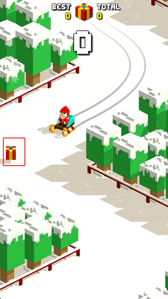2、滑行時(shí)觀察禮盒位置,調(diào)整雪橇方向,精準(zhǔn)碰撞收集禮盒,同時(shí)避開(kāi)樹(shù)木圍欄,確保持續(xù)前進(jìn)。
