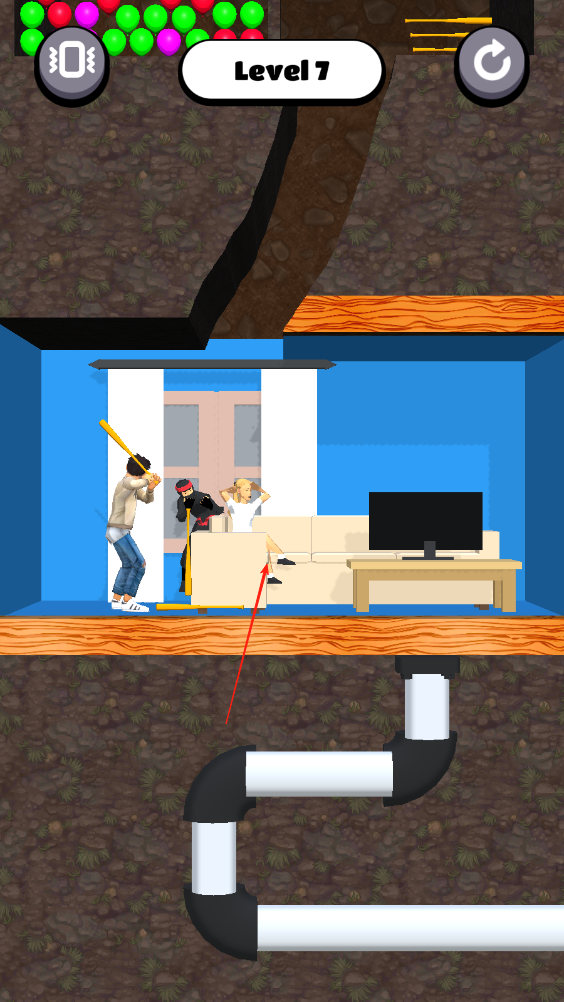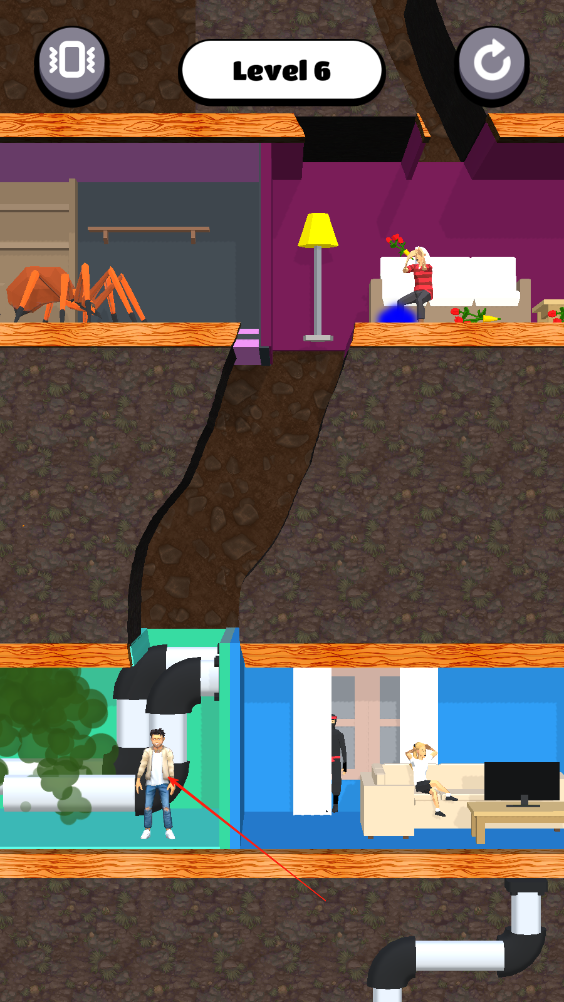 1、滑動(dòng)屏幕將中間的土劃開,讓男生找到房間里的女生和她重聚,即可完成這一環(huán)節(jié)。