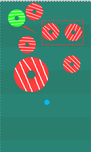 4、控制紅框藍(lán)色小球,撞擊紅色甜甜圈得分。