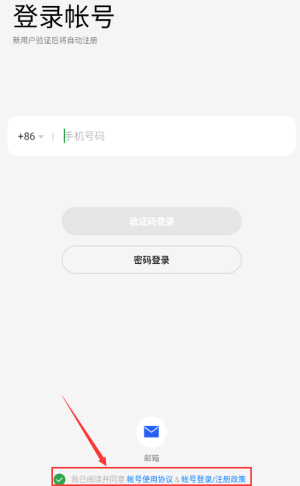 3、勾選紅框協(xié)議選項(xiàng),同意條款后繼續(xù)登錄操作。