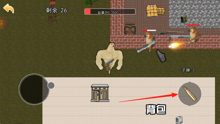 1、操控持槍狗狗,在場景射擊敵人持槍柴犬,留意血量1841/2500、剩余敵人29。