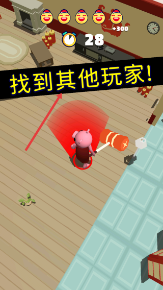3、成功成為抓捕者后,操控手持武器的角色,依據(jù)界面找到其他玩家提示,在28秒倒計(jì)時(shí)內(nèi),利用視野范圍搜索場(chǎng)景,定位并追捕其他玩家,完成抓捕目標(biāo)。