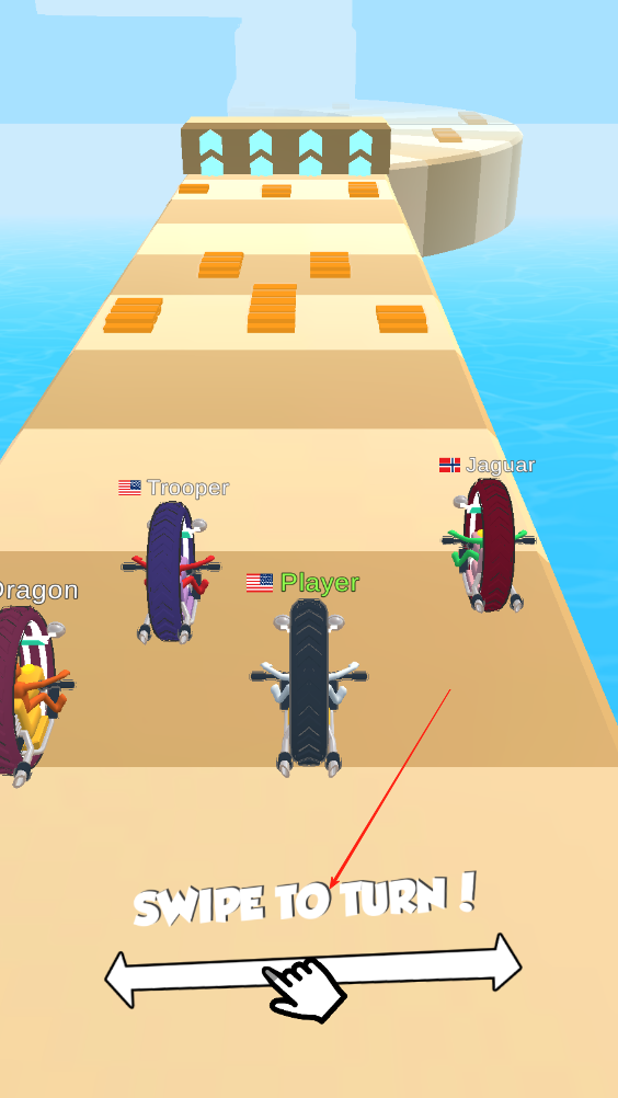 2、競(jìng)速?zèng)_刺技巧:在保持平衡的前提下,長按加速按鈕提升速度,合理利用賽道直道加速,彎道時(shí)適當(dāng)減速穩(wěn)控車身,確保以最快節(jié)奏通過每一個(gè)路段。