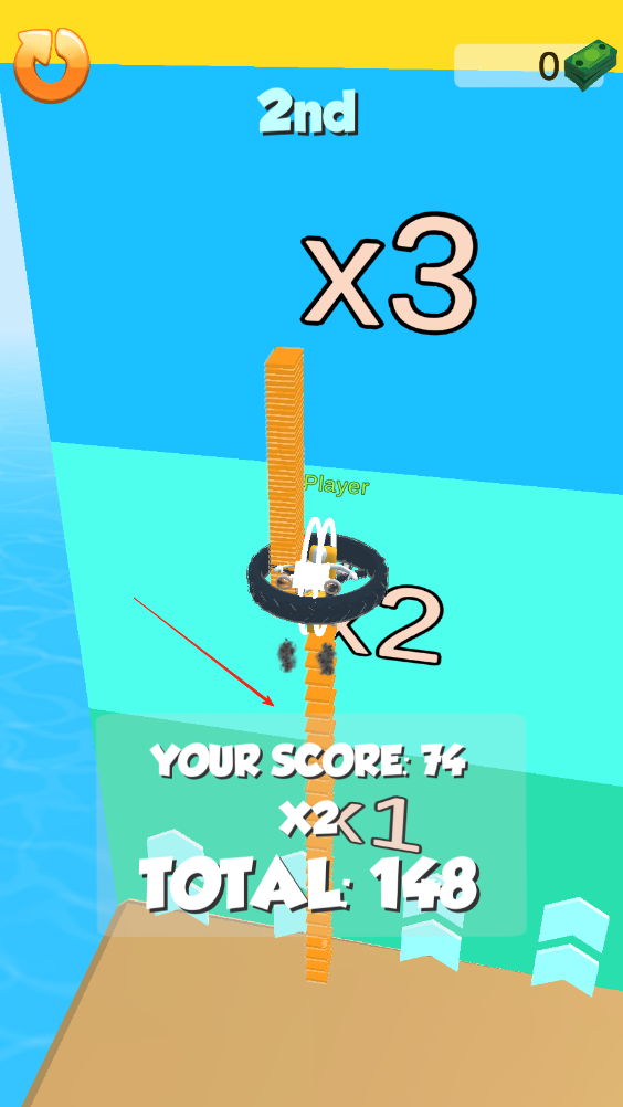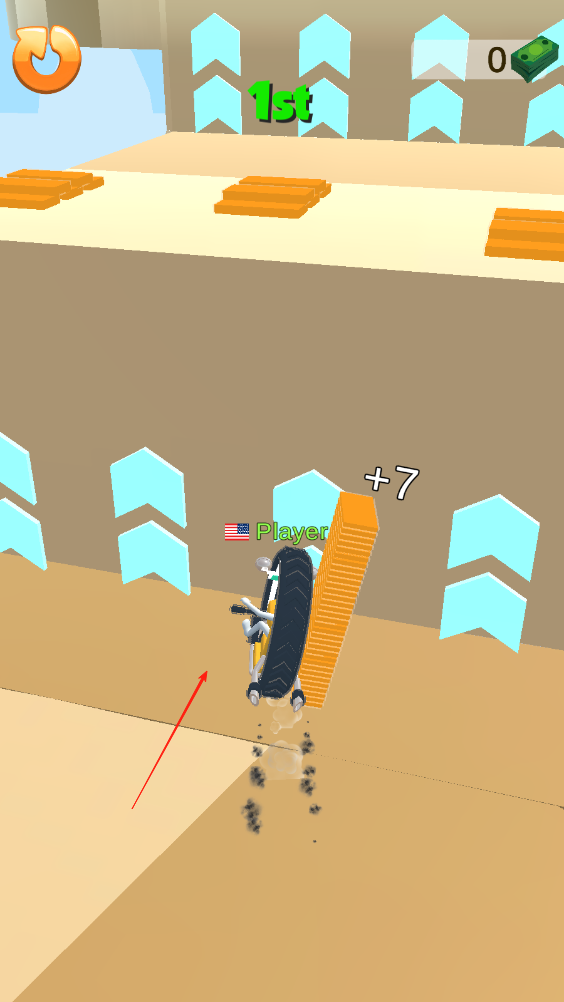 3、沖過終點(diǎn)之后,剩余的木板會(huì)在獎(jiǎng)勵(lì)區(qū)將獨(dú)輪車墊高,墊得越高分?jǐn)?shù)翻倍的越高,獎(jiǎng)勵(lì)也會(huì)變得豐厚。