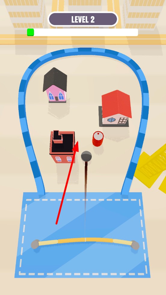 1、進(jìn)入關(guān)卡后,滑動(dòng)屏幕自由繪制線條,構(gòu)成彈弓軌道,調(diào)整線條弧度、長(zhǎng)度設(shè)定彈射角度;對(duì)準(zhǔn)建筑,松手觸發(fā)鐵球彈射。