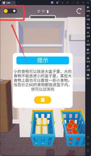 1、玩家在游戲中需要將關(guān)卡中給出的各種各樣的物品,按照合理的分類和空間布局,逐一放進(jìn)冰箱里。