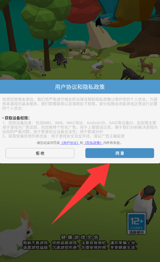 1、點擊用戶協(xié)議和隱私政策里的同意并繼續(xù)。