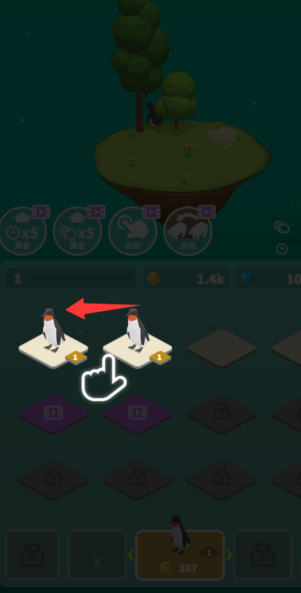 3、點擊紅色箭頭里的企鵝會消耗100金幣。