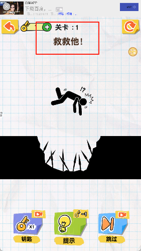 3、畫線幫助火柴人活下來,即可完成關(guān)卡。