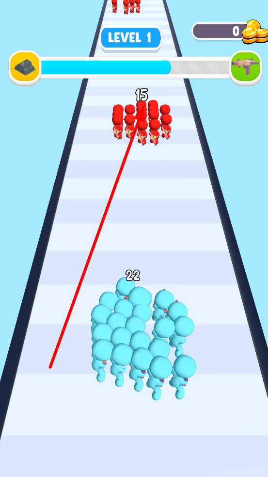 2、抵達(dá)終點(diǎn)前,藍(lán)色軍團(tuán)與紅色部落正面碰撞,人數(shù)差直接決定勝負(fù),戰(zhàn)斗時(shí)會消耗小人的數(shù)量。
